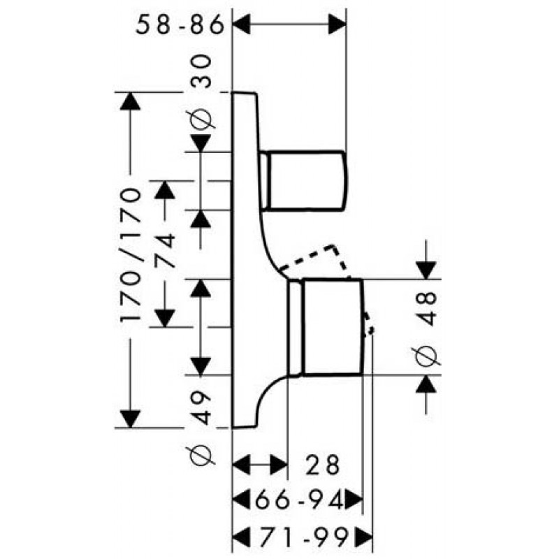 Hansgrohe AXOR Massaud Páková vaňová batéria pod omietku, chróm 18455000- Vrchná sada obsahuje: rozetu, rukoväť, objímku, prepínač, funkčný blok