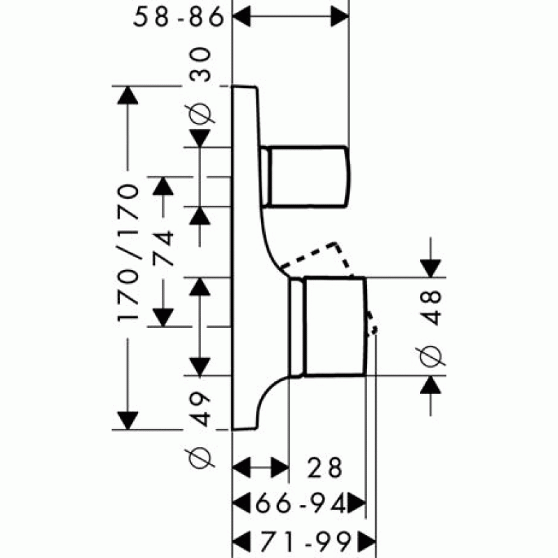 Hansgrohe AXOR Massaud Páková vaňová batéria pod omietku s bezp. komb, chróm 18457000- S integrovanou bezpečnostnou kombináciou podľa EN 1717