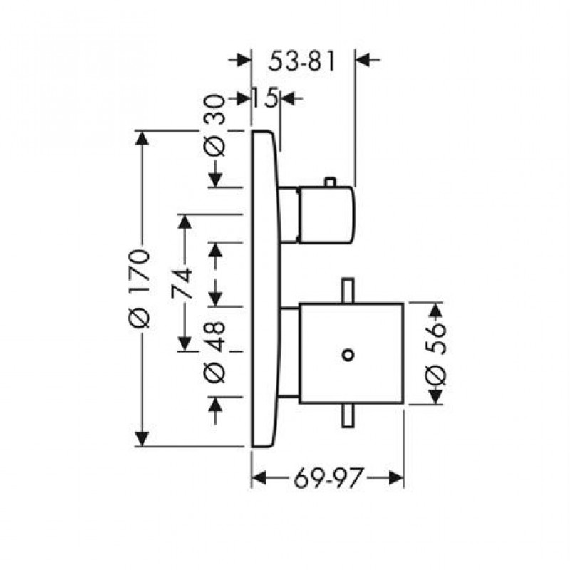Hansgrohe AXOR STARCK Termostat pod omietku s uzatváracím a prep. ventilom, chróm 10720000- Vrchná sada obsahuje: rozetu, rukoväť, objímku, funkčný blok, keramický uzatvárací a prepínací ventil, termoregulačné prvok