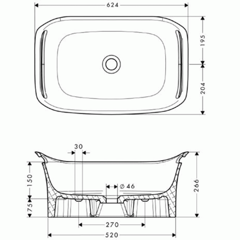 Hansgrohe Axor Urquiola Umývadlová misa 625 mm na zavesenie na stenu, biela 11302000- Na zavesenie na stenu
