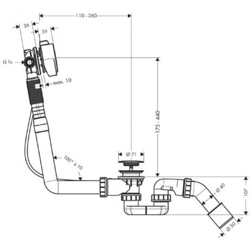 Hansgrohe Exafill S Vaňový výtok s odt. a prep. súpr. Úplná sada DN20, chróm 58113000- úplná sada pre normálne vane, obsahuje vrchná sadu a základné teleso