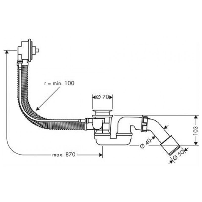 Hansgrohe Flexaplus Zákl. teleso vaňové odt. a prep. súpr. pre zvl vane 58141180- ohybná prepadová hadica
