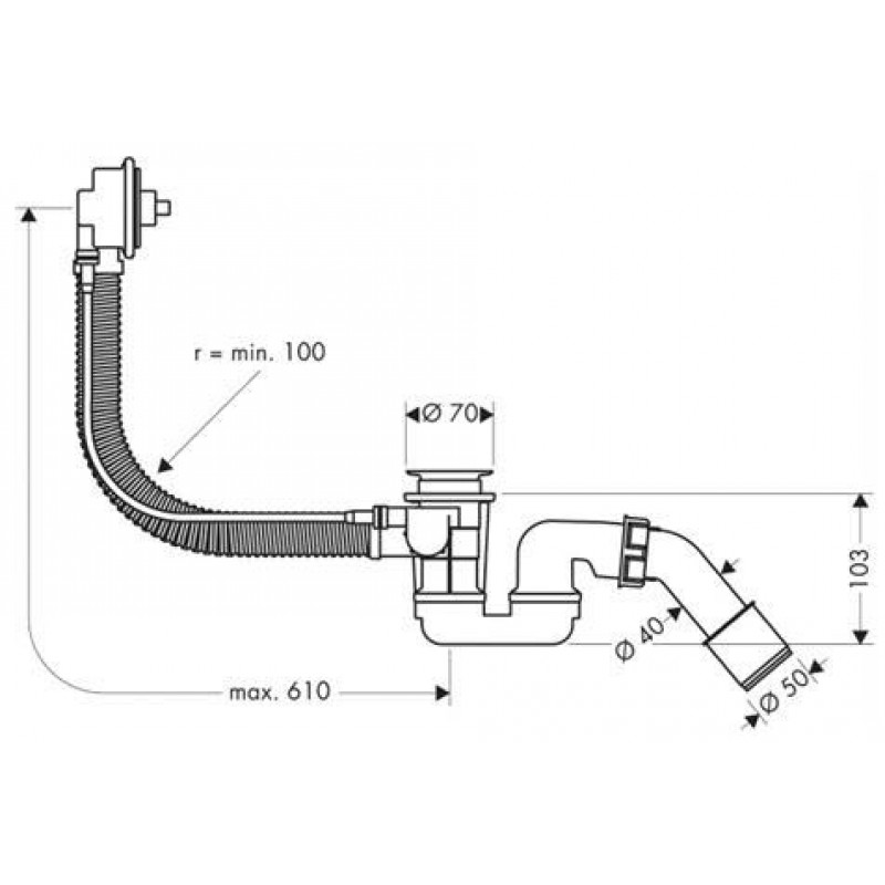 Hansgrohe Flexaplus Zákl. teleso vaňové súpr. pre norm. vane a spr. vaničky 58140180- ohybná prepadová hadica