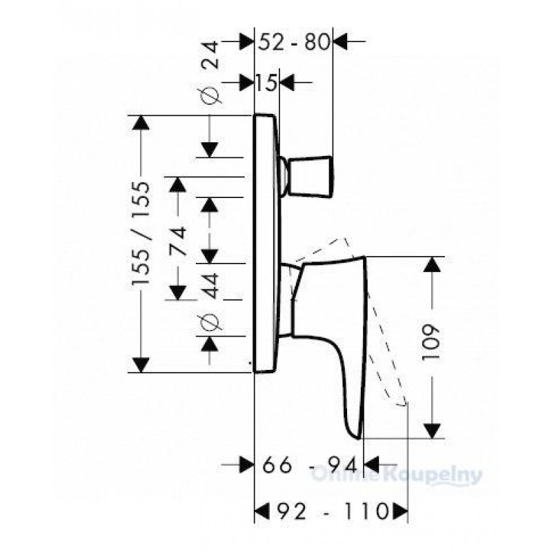 Hansgrohe PURAVIDA Páková vanová baterie pod omítku s bezpeč. kombinací, chrom 15447000- keramický mísící systém