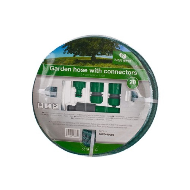 HAPPY GREEN Záhradná hadica so spojkami Garden 50YE440005Záhradná hadica so spojkami Garden, 3 spojky, 1 tryska, dĺžka 20m, 1/2 ', hr. 1,8mm, farba zelená