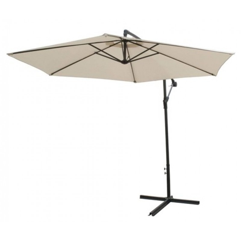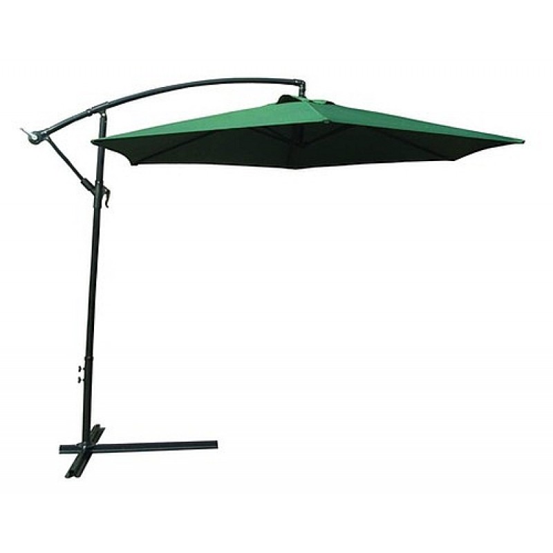 HAPPY GREEN Závesný slnečník zelený 300cm 5046100DGZávesný slnečník priemer 3m, 6 oceľových rebier 12x18mm, polyester tmavo zelenej farby 160g/m2. Pevná oceľová tyč s priemerom 48mm. Stojan (súčasťou výrobku) je možné zaťažiť betónovými dlaždicami pre zvýšenie celkovej stability. Otváranie slnečníka sa vykonáva kľučkou.