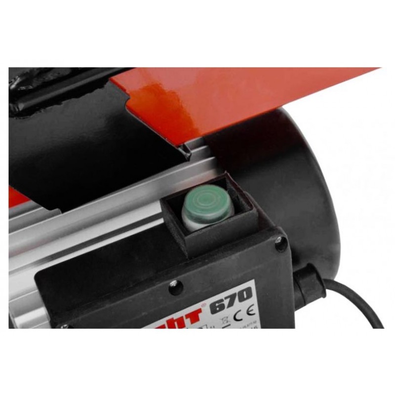 HECHT 670 Elektrická štiepačka na drevo HECHT670Výkonná elektrická štiepačka, ktorá vyvíja tlak až 7 ton. Vďaka tomu si poradí ľahko sa kláty s priemerom 250 mm a dĺžkou 520 mm. Štiepačka váži iba 46 kg, navyše je vybavená pojazdovými kolesami a rukoväťou, preto nie je problém prepraviť ju kamkoľvek po záhrade. Napájaná je z bežnej elektrickej siete 230 V/50 Hz, jej príkon je 2000 W.