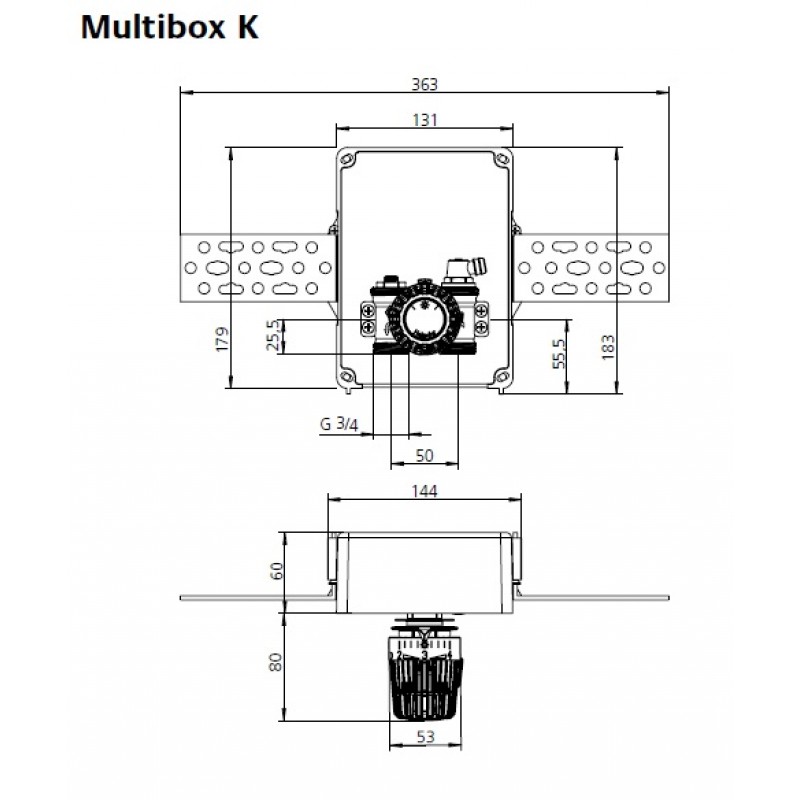 Multibox je určený pre reguláciu podlahového alebo stenového vykurovania alebo pre kombináciu podlahového vykurovania a vykurovanie vykurovacími telesami. Kryt umožňuje korekciu montážne pozície v rozsahu 6 ° na každú stranu. Uchytenie krytu je skryté. Farebné prevedenie v bielej farbe alebo chróm. Základné box možno ľahko upevniť do rôznych stavebných konštrukcií a kompenzovať hĺbku uloženia v rozmedzí do 30 mm.