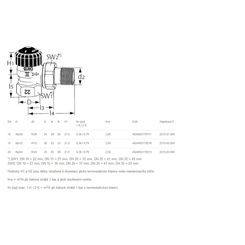 HEIMEIER radiátorový ventil Standard DN 15-1/2 "rohový, skrátený 2215-02.000