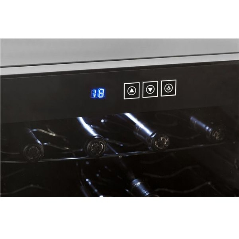 Vinotéka Hyundai VIN 28 vám poskytne ideálne teplotné podmienky pre vaše obľúbené víno priamo u vás doma, napríklad v obývacej izbe. Umožňuje nastaviť optimálnu teplotu v rozmedzí 12-18 ° C až pre 28 fliaš vína s maximálnym rozmerom 8x33 cm. Aktuálna vnútorná teplota je zobrazená na LED displeji s modrým podsvietením a dotykové ovládanie je veľmi jednoduché a rýchle.