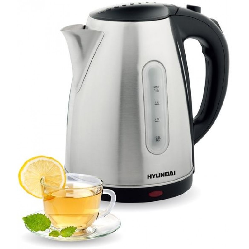 Nerezová rýchlovarná kanvica Hyundai VK 222 o objeme 1,7 ls plochým nerez dnom, 360 ° konektorom, vyberateľným filtračným sitkom a ľahkou povrchovou údržbou.