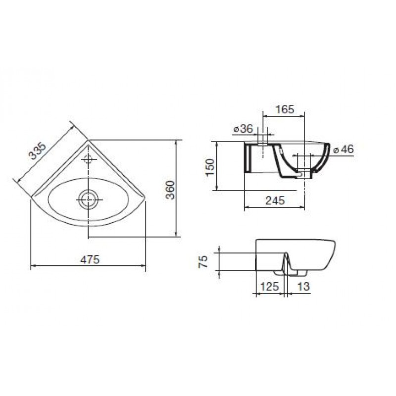 IDEAL Standard EUROVIT umývadielko rohové 33,5 x 33,5 x 47,5 cm V220201Umývadielko určené do rohu s otvorom pre armatúru.
