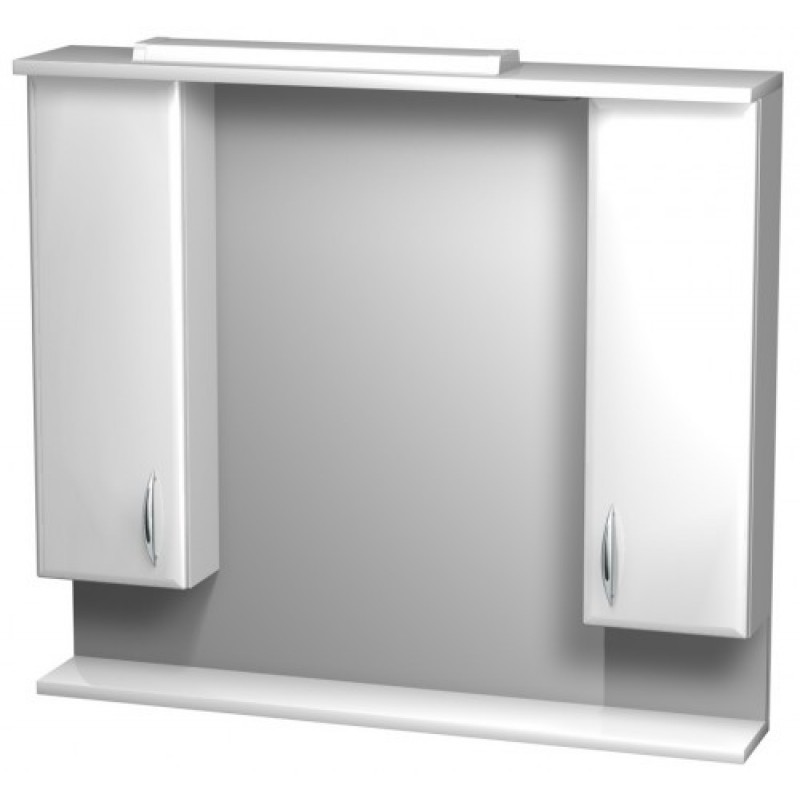 INTEDOOR AZZURRA kúpeľňová zrkadlová stena s dvomi skrinkami a osvetlením AZZS90/63Kúpeľňová zrkadlová stena šírky 90 cm so skrinkou vľavo a vpravo, halogénové osvetlenie 12V (2 × 20W), zásuvka, vypínač osvetlenia, IP44, spodná polička, za plnými dvierkami jedna pevná polica.