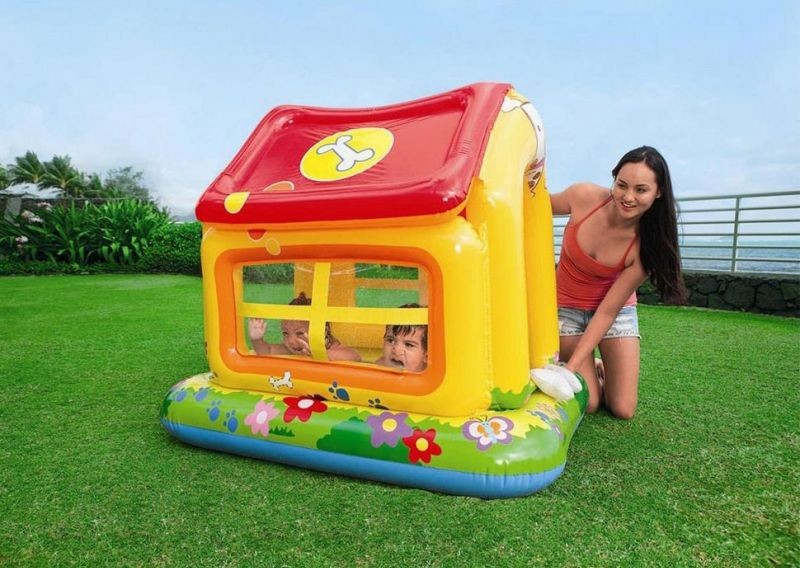 INTEX Bazén Puppy Love 157429NPDom na plávanie! Rozmer 142 x 117 x 122 cm a objem vody 83 l pri 14 cm ponúka Vašim deťom dostatok miesta a vody na hranie. Hrúbka materiálu 0,25 mm sa stará o dostatočnú odolnosť a stabilitu. Strecha domu chráni pri hre pred príliš intenzívnym slnečným žiarením, okná z priesvitnej fólie sa starajú o správny „prehľad“. Od 1 - 3 rokov.
