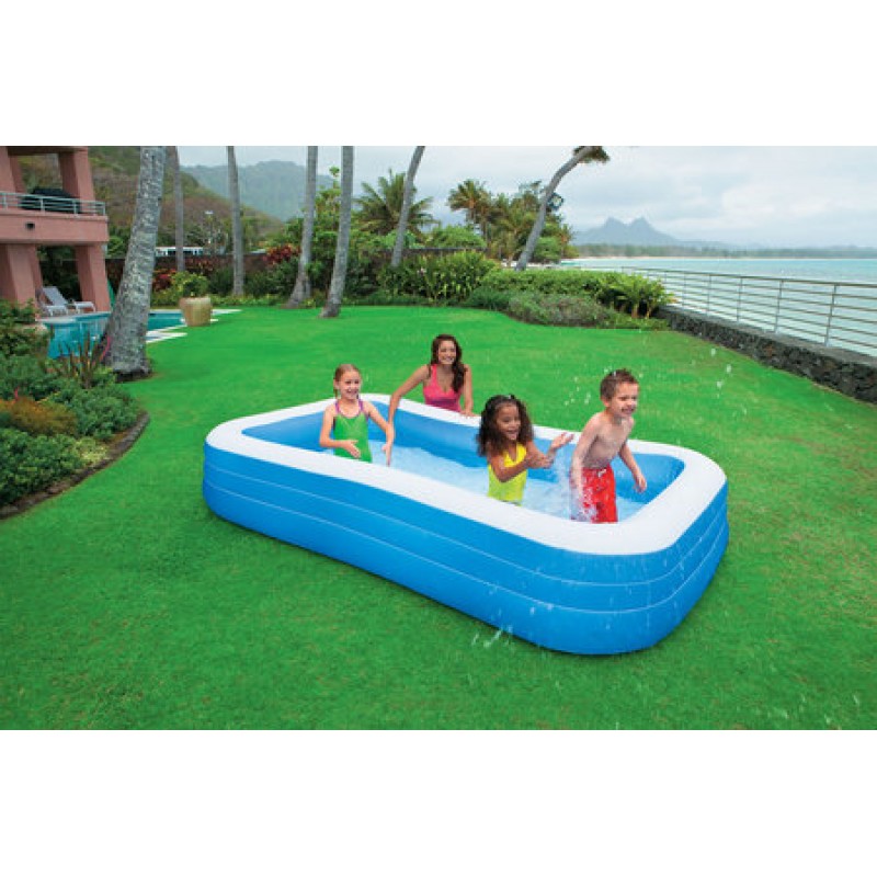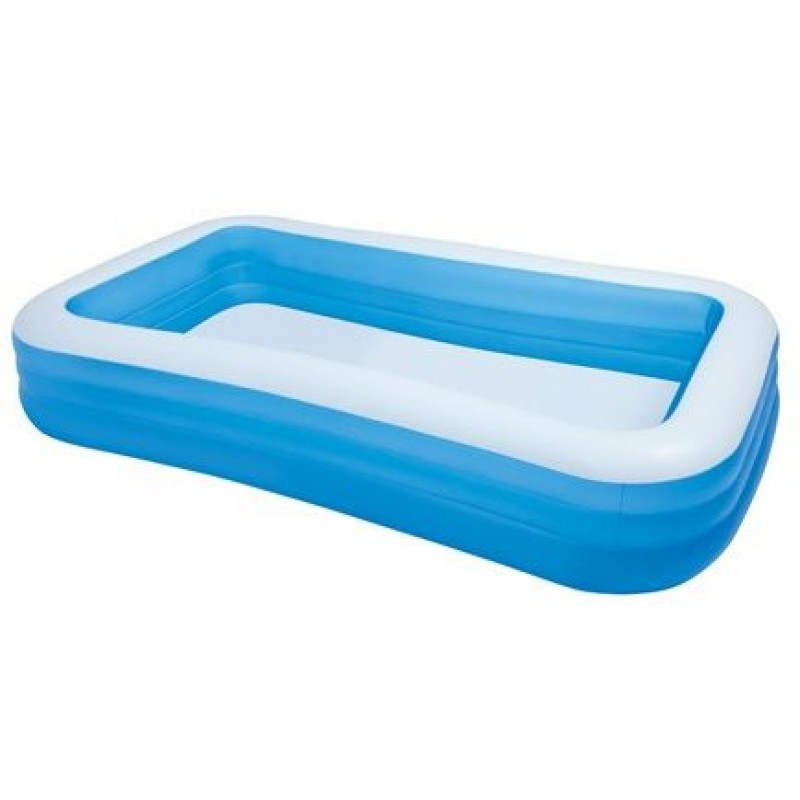 Bazén pre celú rodinu. S rozmerom 305 x 183 x 56 cm, 3 vzduchovými komorami, každá s veľkým kombinovaným ventilom na rýchle nafúkanie a vypustenie vzduchu, výpustným ventilom, širokými stenami a hrúbkou materiálu 0,32 mm, ponúka bazén Swim Center Family dostatok miesta pre niekoľko osôb. Pri výške naplnenia 37 cm predstavuje objem vody 999 l. Od 6 rokov.