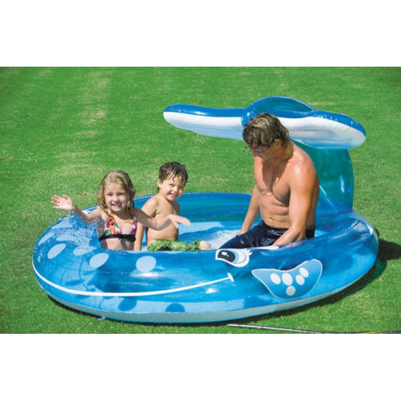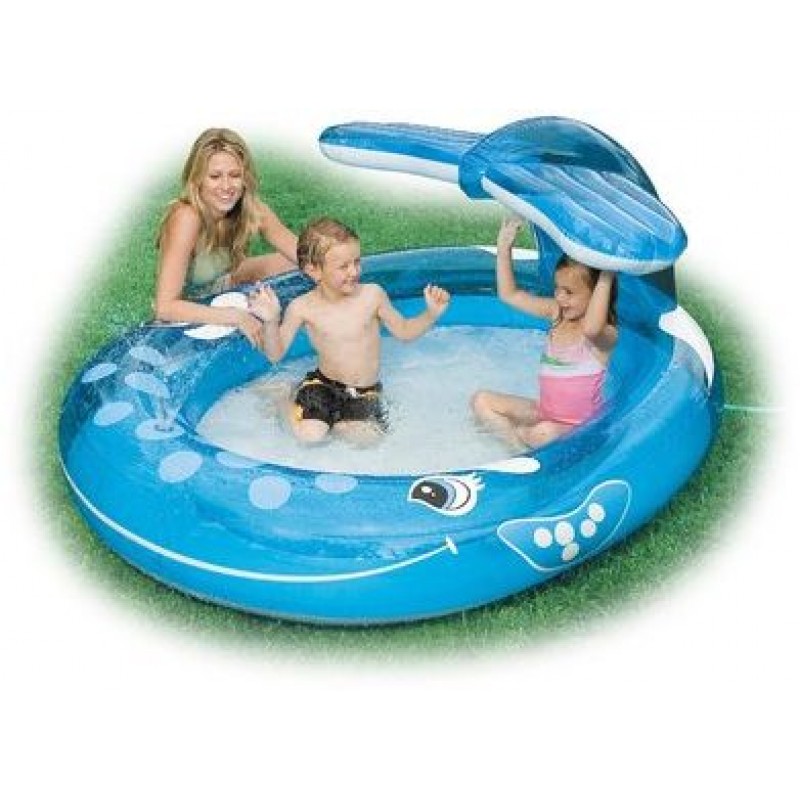INTEX Whale Spray Bazén 57435NPOriginálny bazén v tvare veľryby. Bazén s rozmerom 208 x 157 x 99 cm disponuje extra širokými stenami, výpustným ventilom a hrúbkou steny 0,28 mm. Integrovanú rozprašovaciu funkciu je možné riadiť pripojením záhradnej hadice. Pri výške naplnenia 20 cm predstavuje objem vody 269 l. Od 2 rokov.