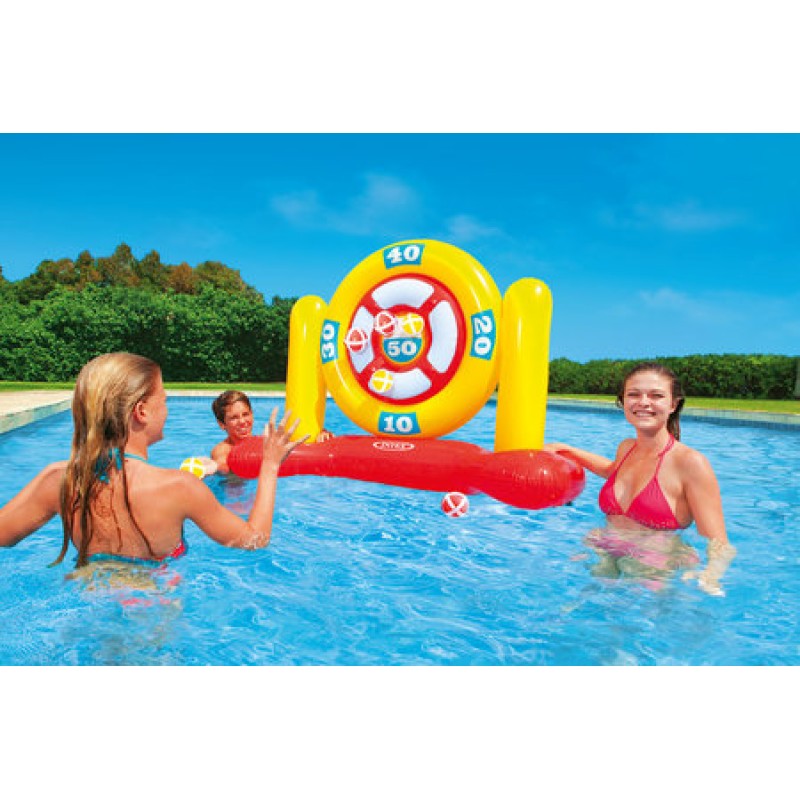 INTEX Hra Ball-Dartz 156509NPPresná muška v bazéne? Potom sa jednoducho otestujte s nafukovacím terčom s rozmerom 140 x 58 x 99 cm. 0,25 mm hrubý vinyl sa stará o stabilitu. Suchý zips sa postará o to, aby sa 6 kusov loptičiek, nachádzajúcich sa v rozsahu dodávky, zachytilo o terč. Od 6 rokov.