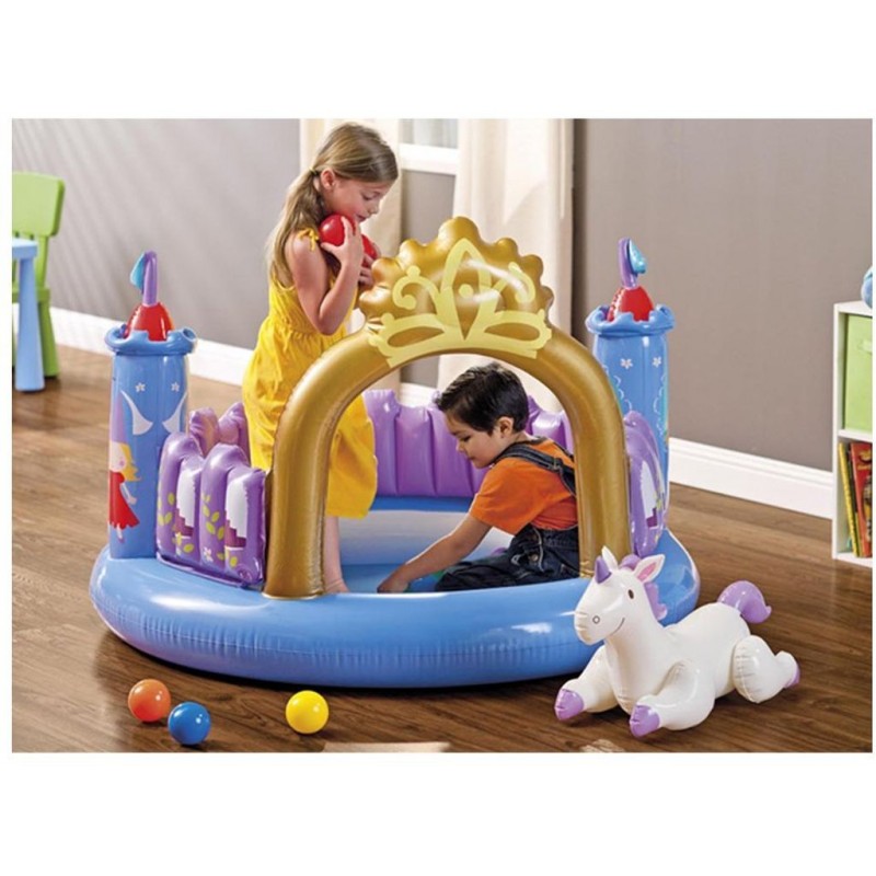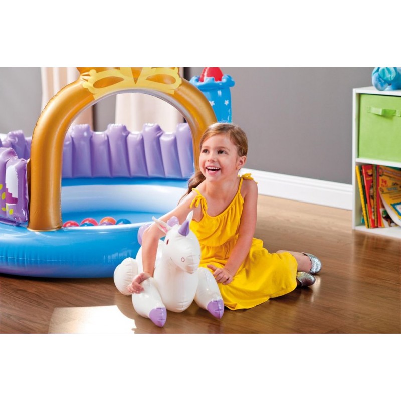 INTEX Magical Castle Ball Toyz hrad na hranie 48669Nafukovací hrad na hranie vrátane 10 plastových loptičiek a nafukovacieho jednorožca.