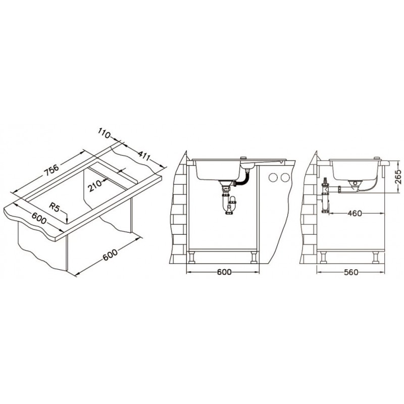Rozmer drezu: 780 x 435 mmRozmer vaničky: 348 x 350 x 160 mm