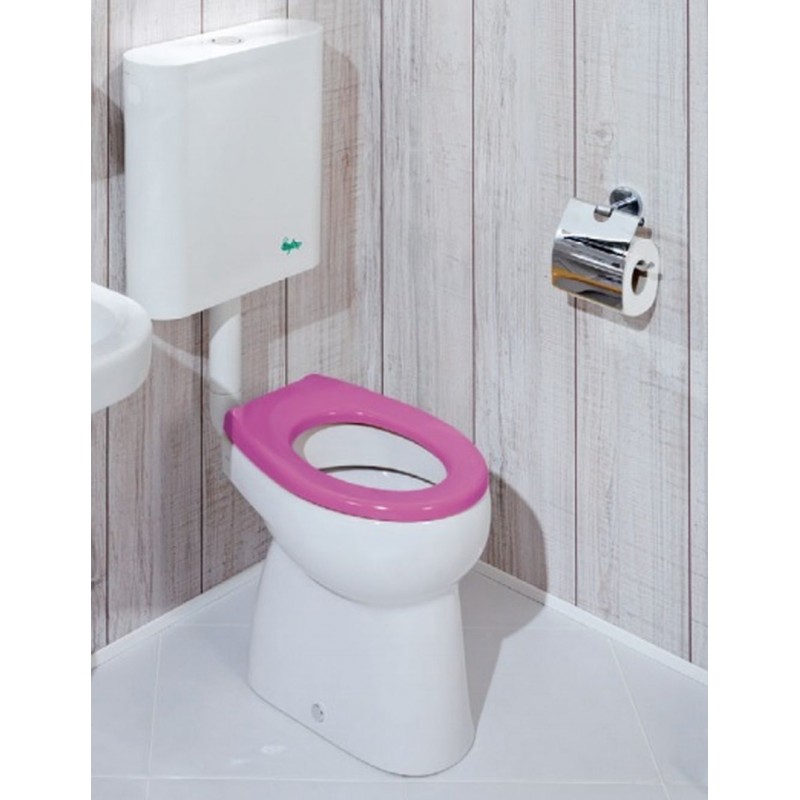 Jika BABY duroplastová doska na sedenie bez poklopu Antibak. ružová H8970373240001Detská kúpeľňa nemusí byť len v materskej škôlke. Každodennú hygienu môžeme deťom spestriť radom šikovných doplnkov. Preto sme vyvinuli nový Baby set, ktorý bude vítaným oživením pre novostavby a rekonštrukcie materských škôlok. Základom sú umývadlá, umývadielka, stojace klozety a sedátka. Baby set ponúka duroplastové sedátka s antibakteriálnou úpravou v bielej či zelenej. Doprajme deťom farby! Premyslene tvarované sedadlo Baby udrží okolie klozetu čisté, hoci na neho zasadnú aj nie príliš šikovné malé deti. Sedadlo bez poklopu sa vždy objednáva zvlášť.