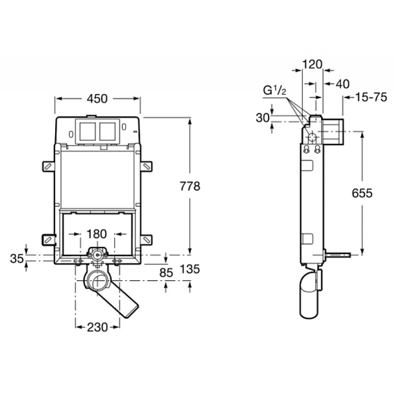 JIKA BASIC WC SYSTEM, pripojenie odpadu 90/110, pre závesné klozety pre namontovanie na stenu s nutnosťou obmurovanie.Tlačidlo Single alebo Dual Flush (nie je súčasť balenia).