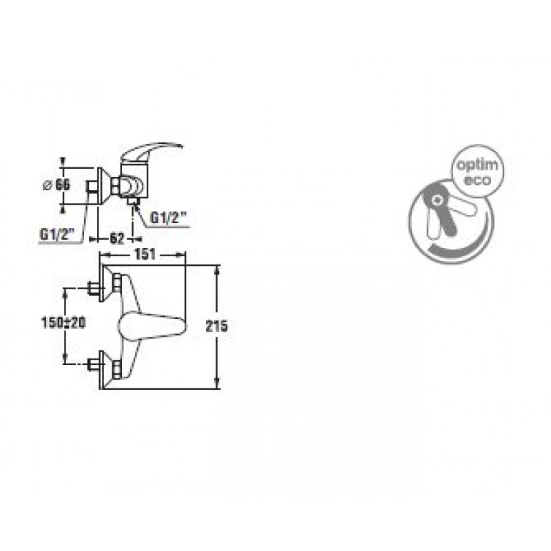 Jika LYRA Sprchová páková nástenná batéria , bez sprchovej sady , chrómRozmery výrobku :
