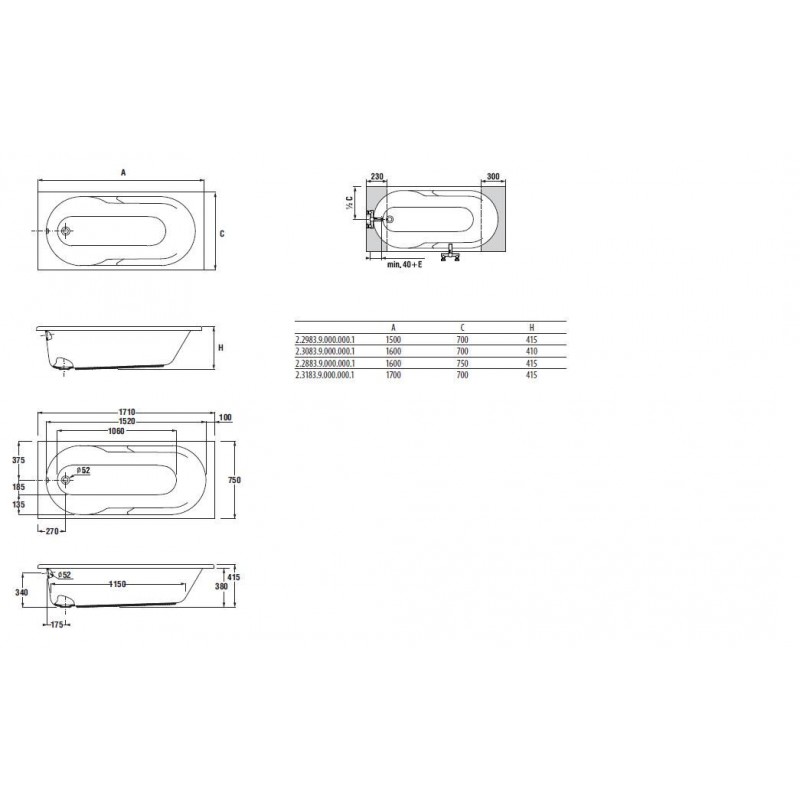 Jika LYRA Obdĺžniková vaňa 1700 x 750 mm, vrátane podpier, akrylátRozmery výrobku: