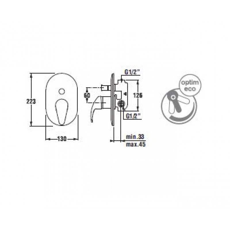 Jika LYRA Vaňová podomietková batéria páková, chrómRozmery výrobku: