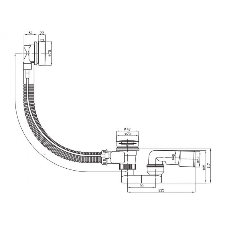 Jika Automatická vaňová výpust vrátane vaňového sifónu 40/50, dĺžka 550 mm, plastové telo prepaduilustračné foto
