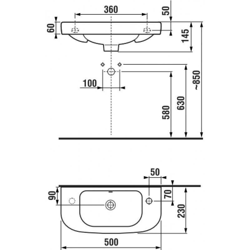 Jika OLYMP Deep Umývadlo 50 cm, s otvorom pre batériu, bielas otvorom pre batériu vľavo