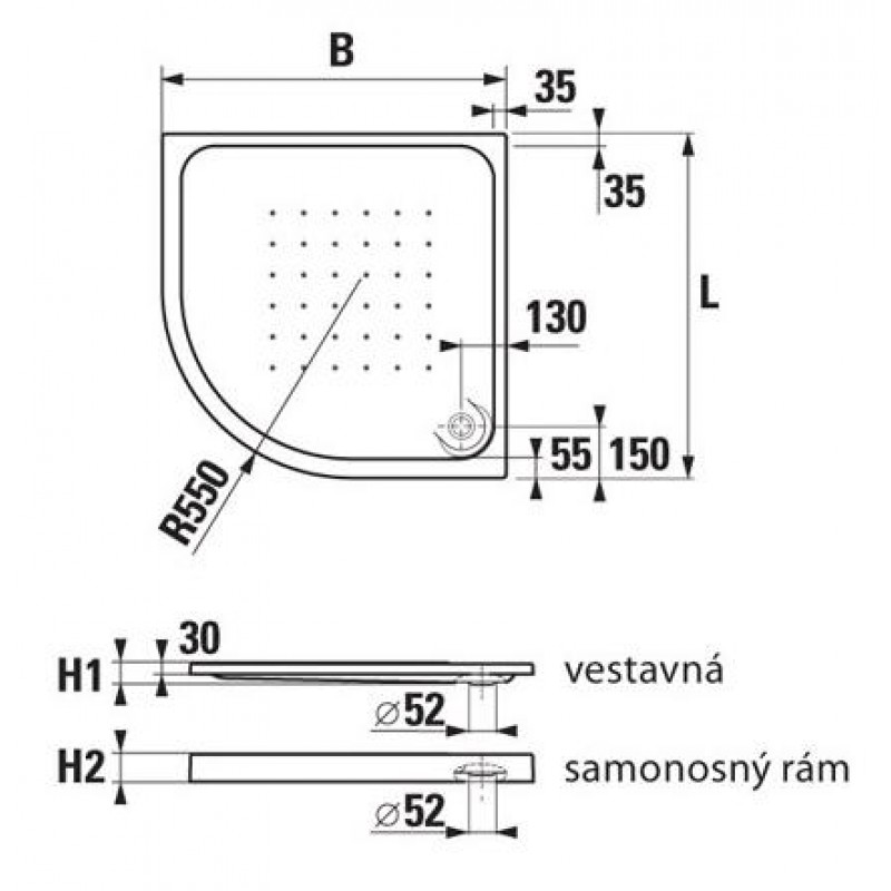 Jika OLYMP Sprchová vanička 90 x 90 cm, štvrťkruhová, samonosný rám, rádius 550 mm, biela, akrylát, ANTISLIPRozmery výrobku