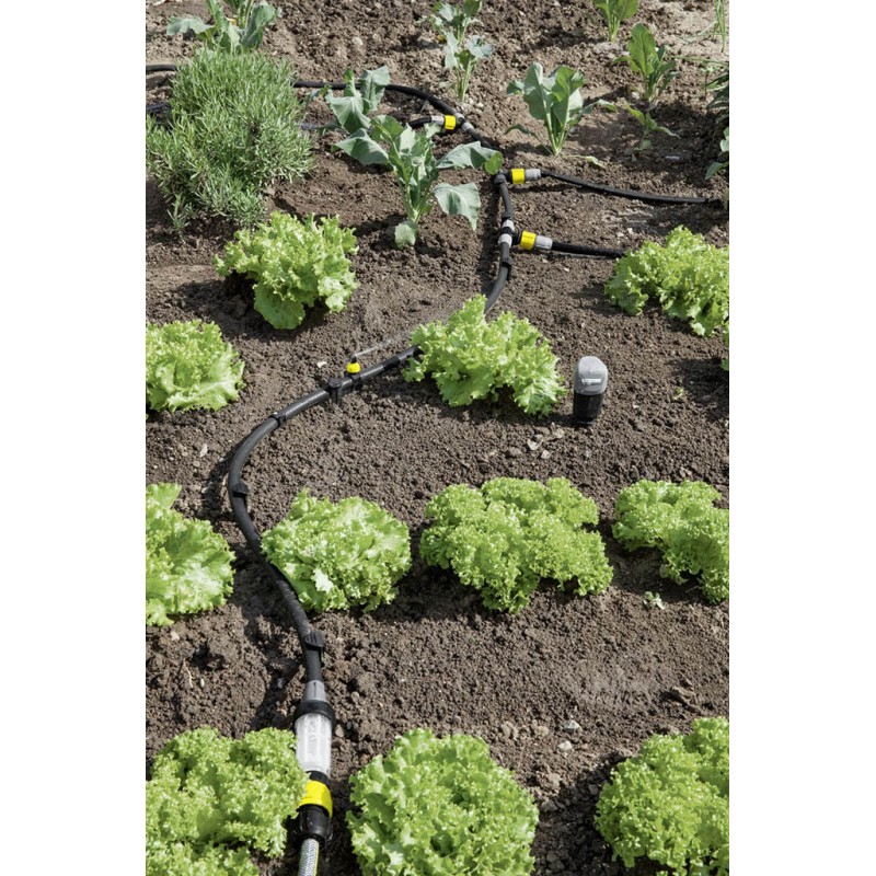 Časticový filter chráni Kärcher Rain System® pred čiastočkami špiny. Filter sa pripája na koniec prívodnej hadice pri prechode na Kärcher Rain System®. Filtračná vložka sa dá kedykoľvek bez problémov vybrať a vyčistiť. Na vstupnej strane sa nachádza prípojka na vodovodný kohútik, ktorá je kompatibilná so všetkými známymi klik systémami. Na výstupnej strane je prípojka pre hadicu Kärcher Rain System® alebo kvapkaciu hadicu. Hadice sa jednoducho priamo nasúvajú alebo sa bez náradia montujú pomocou prevlečnej matice. Efektívny zavlažovací systém Kärcher Rain System® v sebe spája výhody mikro-kvapkania a bežného zavlažovania. Systém pracuje s tlakom do 4 bar, dá sa individuálne prispôsobiť takmer každému typu záhrady a perfektne spolupracuje so zariadením SensoTimer pre zavlažovanie podľa potreby.