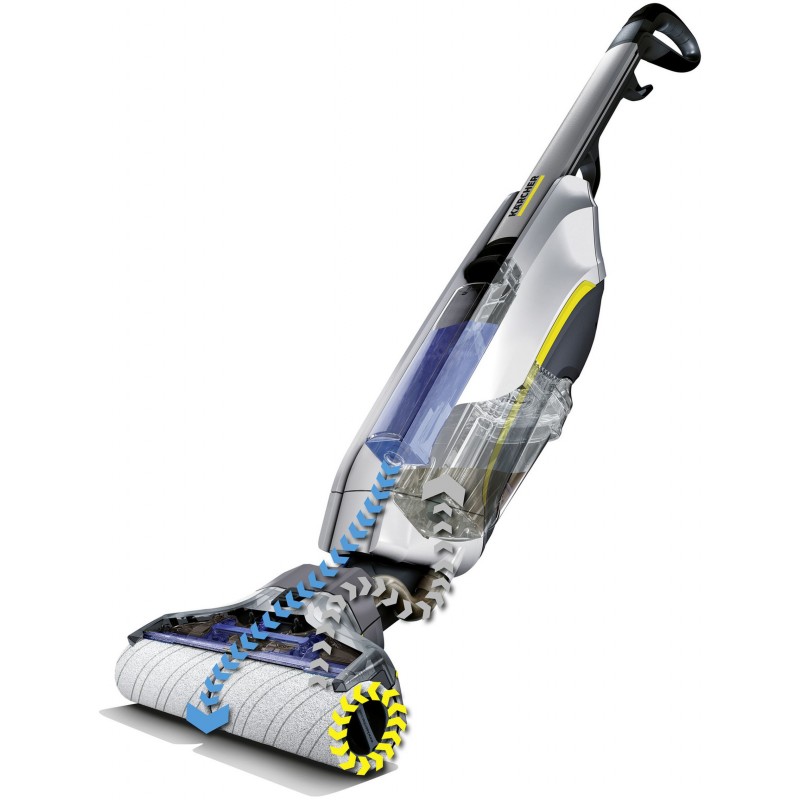 Ušetrí namáhavé vysávanie pred umývaním podlahy: čistič tvrdých podláh FC 5 Premium. Vďaka praktickej funkcii 2 v 1 sa vlhká aj suchá špina zotrie a odsaje iba v jednom pracovnom kroku. Automaticky vlhčené rotujúce valce z mikrovlákna odstránia špinu a nečistoty zmiešané s vodou sú z valcov okamžite odsávané, vďaka tejto funkcii zostávajú počas celej doby čistenia svieže, pripravené na použitie. Model Premium obsahuje navyše jeden náhradný pár valcov, 500 ml univerzálneho čističa ako aj 30 ml vzorku čistiaceho prostriedku na tvrdé podlahy. FC 5 v porovnaní s bežnými metódami okrem toho ušetrí až 85 percent vody a dosahuje lepší čistiaci výkon. FC 5 sa môže používať na každej podlahe z dreva, kameňa alebo plastu.Technické údaje: