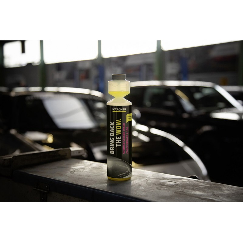 Letná zmes do ostrekovačov Kärcher – vysoko účinný čistiaci koncentrát pre dokonalý výhľad bez šmúh a odleskov. Odstraňuje zvyšky hmyzu aj vtáčiu strus. 250 ml ponúka 25 l čistiaceho prostriedku.