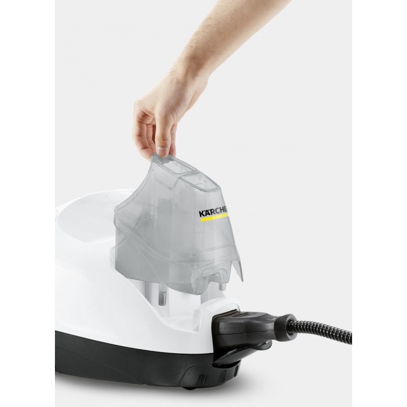 Mimoriadne pohodlný parný čistič SC 4 EasyFix Iron čistí bez chémie a môže byť použitý kdekoľvek v domácnosti. Pomocou dvojstupňovej regulácie pary je možné prispôsobiť intenzitu pary povrchu a nečistotám. Dôkladné čistenie parným čističom Kärcher odstráni 99,999 % vírusov* a 99,99 % všetkých bežných domácich baktérií** z typických domácich tvrdých povrchov. Použitím správneho príslušenstva zariadenie zaisťuje príkladné výsledky čistenia dlaždíc, varných dosiek, digestorov a dokonca aj v tých najmenších medzerách. Odstráni aj nepoddajné nečistoty. Dodaná parná tlaková žehlička skracuje obvyklý čas žehlenia o polovicu. Podlahová hubica EasyFix sa vyznačuje pôsobivou kombináciou flexibilného kĺbu pre vynikajúcu ergonómiu a lamelovej technológie pre dokonalé výsledky čistenia. Vďaka pohodlnému systému suchého zipsu je možné utierku na podlahu rýchlo a ľahko pripevniť k podlahovej hubici a znova odstrániť bez toho, aby ste museli prísť do kontaktu s nečistotami. Odnímateľnú nádržku na vodu je možné doplniť – pre neprerušované čistenie. Ďalšie podrobnosti o výbave: integrovaný odkladací priestor na káble, odkladací priestor na príslušenstvo, parkovacia poloha pre podlahovú hubicu.