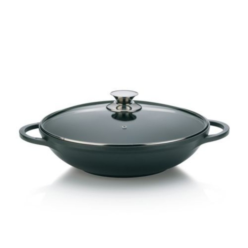 KELA Wok panvica KERROS 32cm, greblon KL-15157Panvicu Wok vyrobená z liateho hliníka je ideálny pre ázijskú kuchyňu, ale aj pre zapekanie a smaženie. Stačí malé množstvo tuku. Pokrievka z kvalitného skla s nerezovým úchytom pre umožňuje zapekanie v rúre.