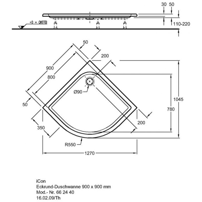 KERAMAG Icon sprchová vanička štvrťkruhová 90 x 90 cm 662440000štvrťkruhová sprchová vanička, biela
