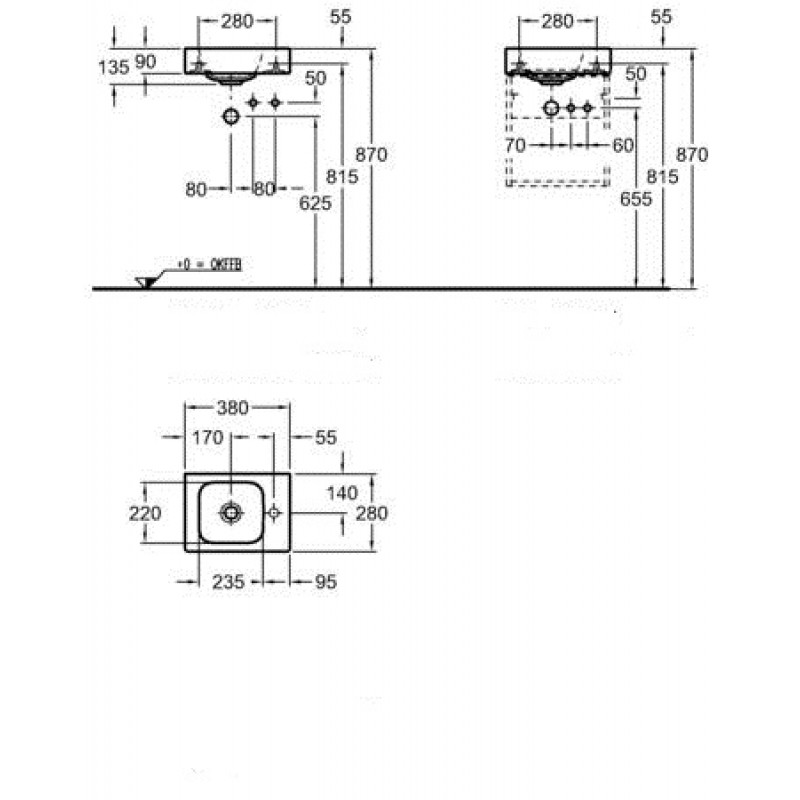 KERAMAG Icon XS umývadielko 38 x 28 bez prepadu, s otvorom vpravo 124736