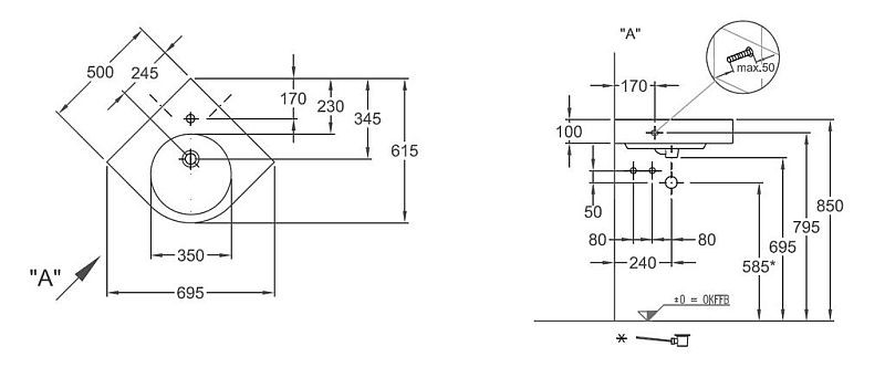 KERAMAG Ren.Nr.1.Comp.rohové umývadlo, 50 cm KT 226150600