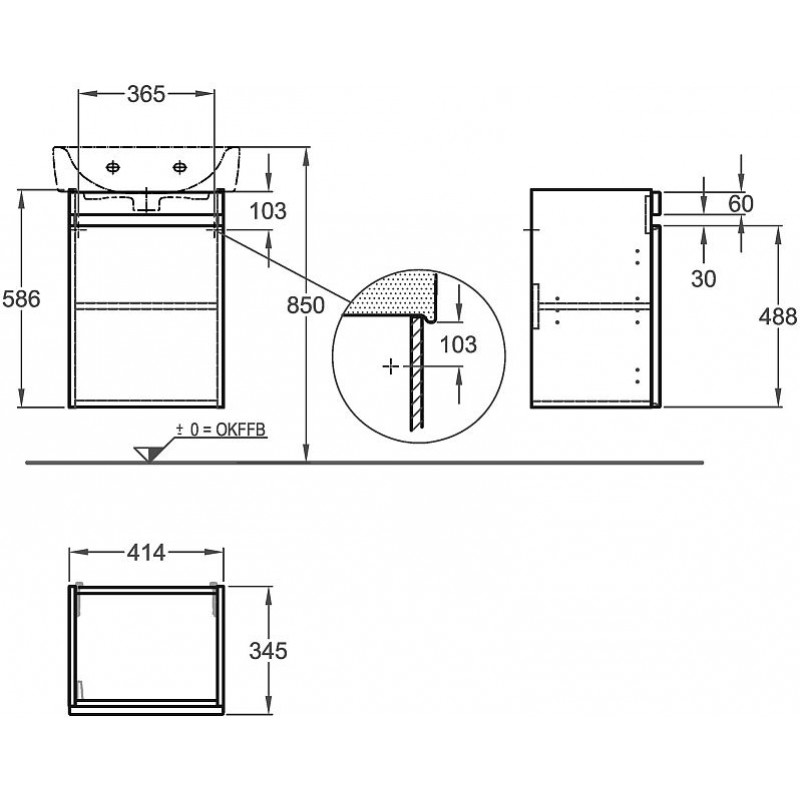 KERAMAG Ren.Nr.1Pl. skř.k um.41x59x35, výsuv, dub tmavý 869053000