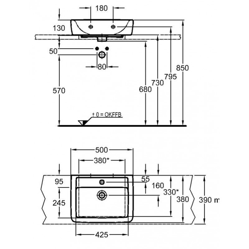 KERAMAG Renova Nr 1 Plan umývadielko na dosku, s otvorom 50 x 38 cm 275150000umývadielko na dosku