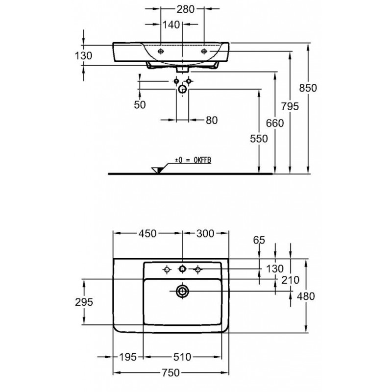 KERAMAG Renova Nr 1 Plan umývadlo asymetrické 75cm, odkladacia plocha vľavo 122175000asymetrické umývadlo