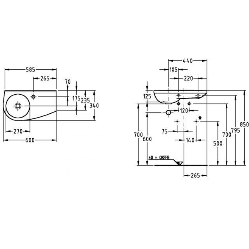 KERAMAG Visit umývadlo s otvorom, odkladacia plocha vpravo 60 x 34cm + KeraTect 123160600umývadlo s otvorom pre batériu