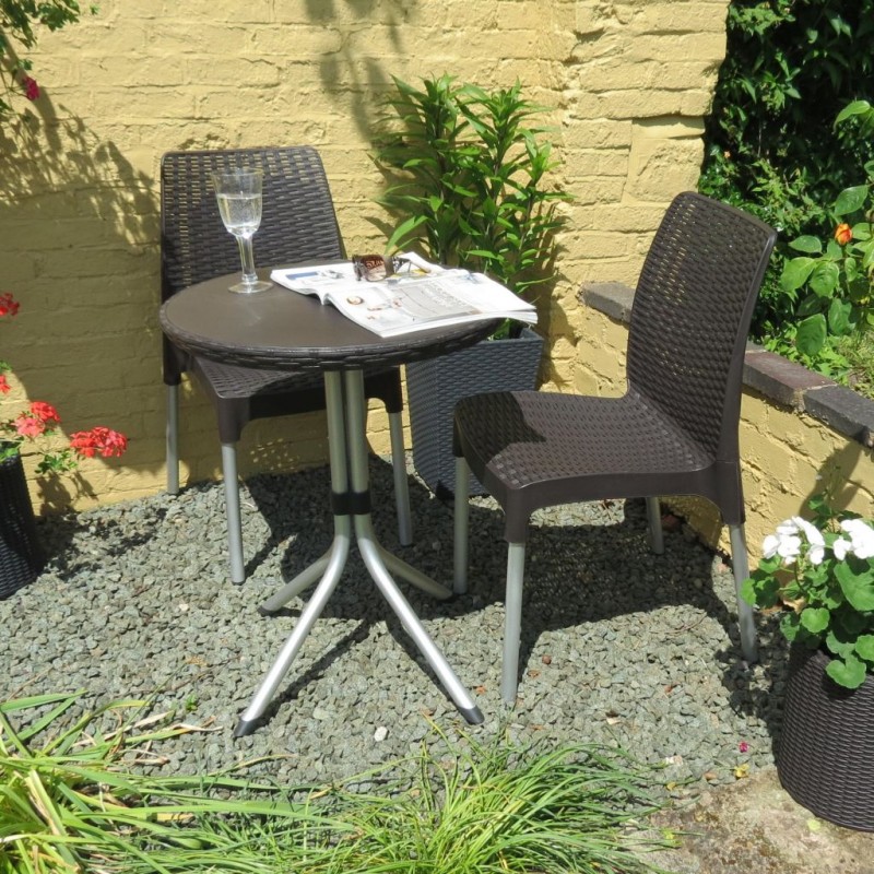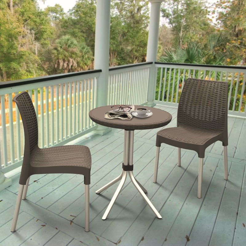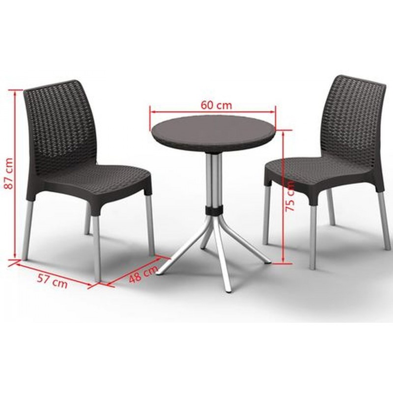 KETER CHELSEA Set balkónový, cappuccino 17199261Set Chelsea je moderná súprava balkónové nábytku. Skladá sa z dvoch stoličiek a stola. Súprava je vyrobená z kvalitného plastu v prevedení imitácie ratanu. Nohy stoličiek a stola sú kovové.Tento produkt sa vyznačuje vysokou životnosťou a odolnosťou voči poveternostným vplyvom a UV žiareniu. Čistenie mäkkou handričkou vlažnou vodou so saponátom.