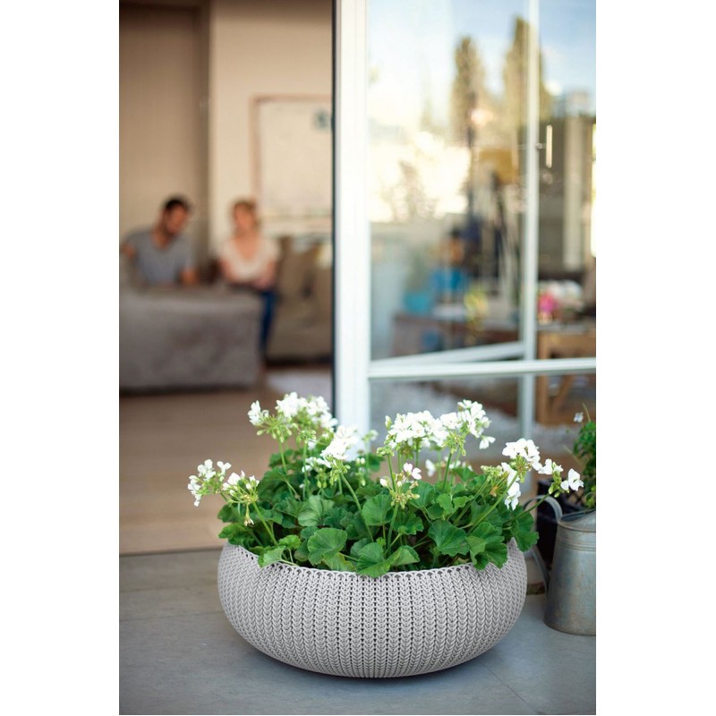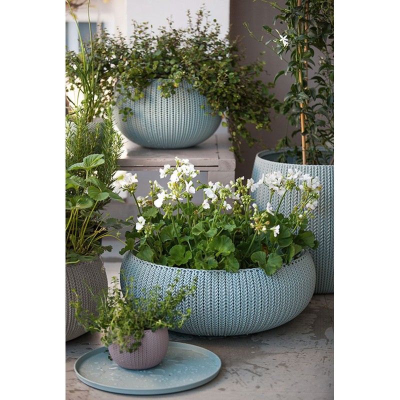 Plastový kvetináč Cozies L kombinuje moderný tvar s úplne originálnou povrchovou štruktúrou, pripomínajúcou háčkovanú väzbu. Kvetináč je zložený z dvoch častí: vnútorný kvetináč na výsadbu, ktorý je vložený do štýlového obalu Knit. Vhodný do interiéru aj exteriéru. Jednoduchá údržba, dlhá životnosť. Materiál kvetináča je odolný voči poveternostným vplyvom a UV žiareniu.