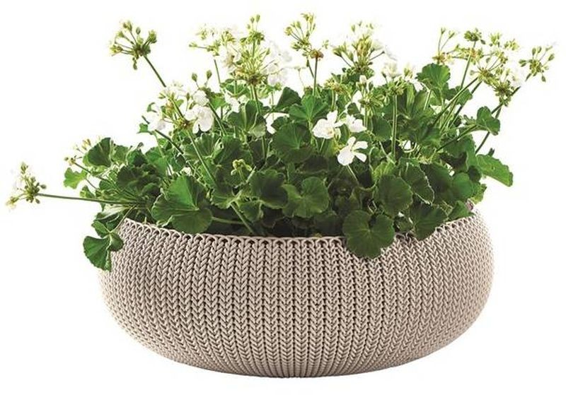 KETER COZIES L kvetináč 54,1 x 54,1 x 20,4cm, piesková 17205455Moderné plastový kvetináč v štýle KNIT. Výnimočný dizajn zaujme aj tých najnáročnejších užívateľov - háčkovaná väzba. Vhodný do interiéru aj exteriéru. Jednoduchá údržba, dlhá životnosť. Veľmi odolný materiál voči poveternostným vplyvom a UV žiareniu.