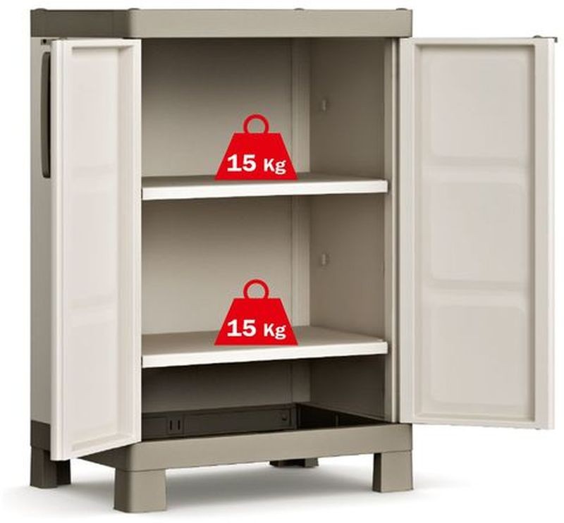 KIS EXCELLENCE LOW skriňa 65x45x97cm béžováNízka plastová skriňa LOW obsahuje 2 poličky, z ktorých každá unesie 15 kg.