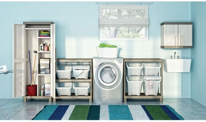 Vznikajú tak tri úložné priestory vhodné na skladovanie uterákov, oblečenie, saponátov, ale aj kancelárskych a iných potrieb.
