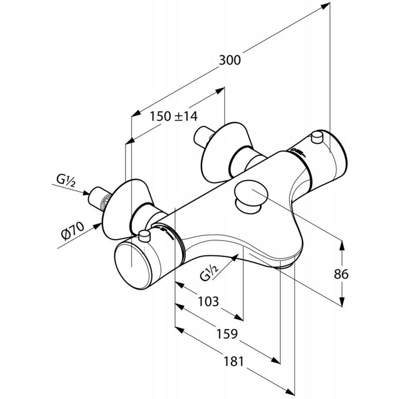KLUDI Amba nástenná termostatická vaňová / sprchová batéria, rozteč 150mm, chrómvaňová a sprchová termostatická batéria DN 15