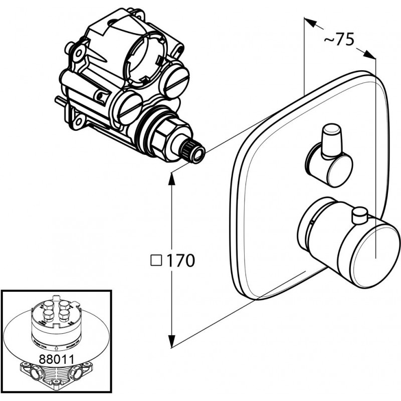 KLUDI Amba podomietková termostatická vaňová / sprchová batéria, chróm 538300575podomietková vaňová / sprchová termostatická batéria